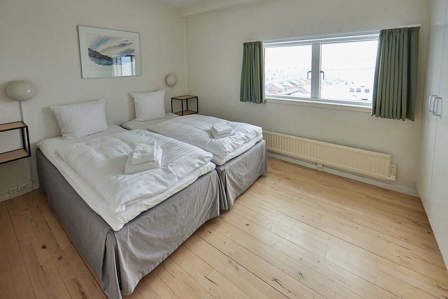 Nyd friheden i en privat lejlighed med fuldt udstyret køkken, spiseplads og separat soveværelse. Perfekt til par, forretningsrejsende og længere ophold. De fleste lejligheder har smuk udsigt til fjorden, og du har adgang til døgnbemandet reception på Hotel Hans Egede, blot 400 m væk.
