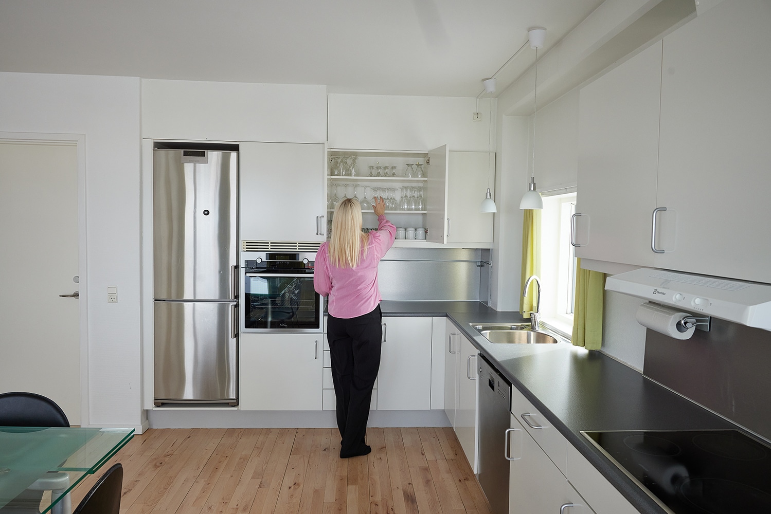 2-værelses lejlighed med dobbeltseng i soveværelse samt 3-værelses lejlighed med dobbeltseng i hver af de to soveværelser.